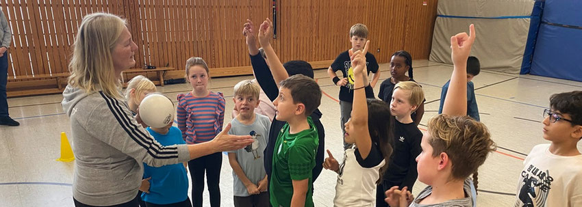 Noch wissen die Erstklässler nicht, was sozial-emotionales Lernen eigentlich bedeutet. Aber genau das trainieren sie in der Sporthalle der Regenbogenschule in Elliehausen. Spiel, Spaß und Bewegung sind die Zutaten in diesem Präventionsprojekt "!Respect", das hier seit sechs Jahren zum Stundenplan gehört und für den respektvollen Umgang miteinander wirbt. Spaß machen die gemeinsamen Übungen zur Team- und Konfliktfähigkeit, die nicht nur das Lernklima verbessern. Sie fördern auch außerhalb der Schulstunden eine freundschaftliche Atmosphäre in den Klassen. (Autorin: Tina Fibiger)